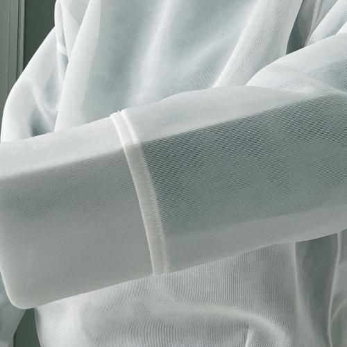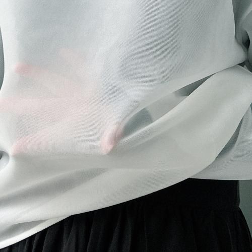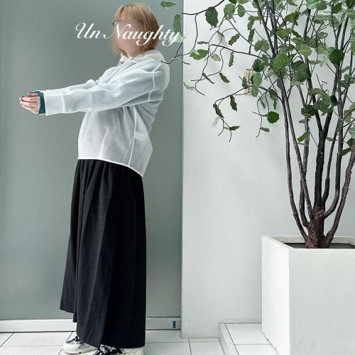 ベーシックな形をトレンド感と女性らしい華奢な印象のシアー素材でこなした今年らしいアイテムです。