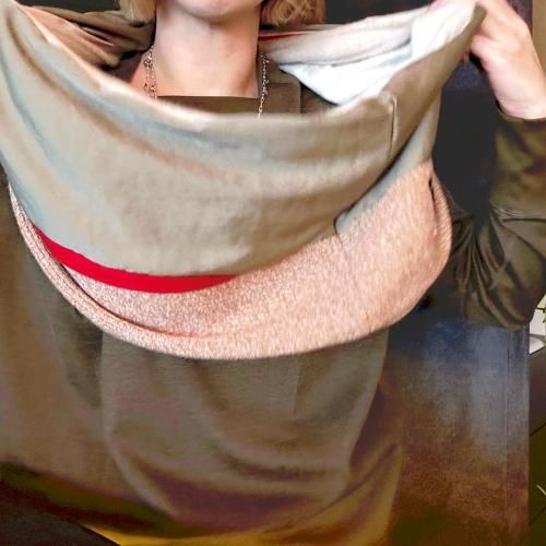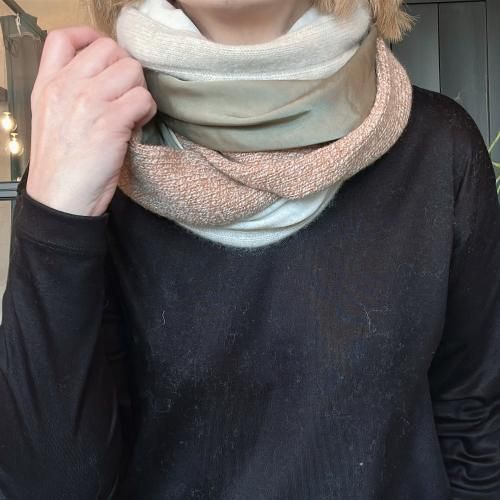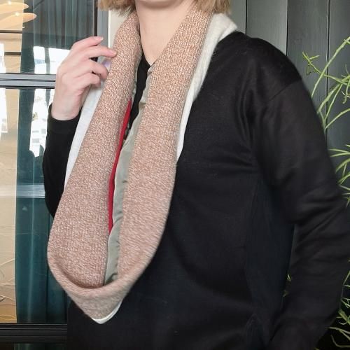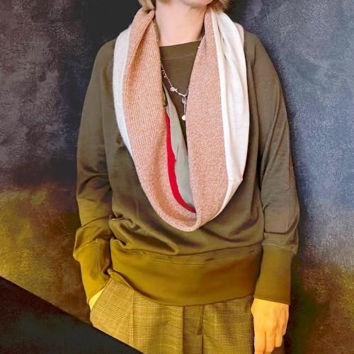 ソフト感と暖かみのある素材をはぎ合わせリング状にしたマフラーです。