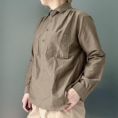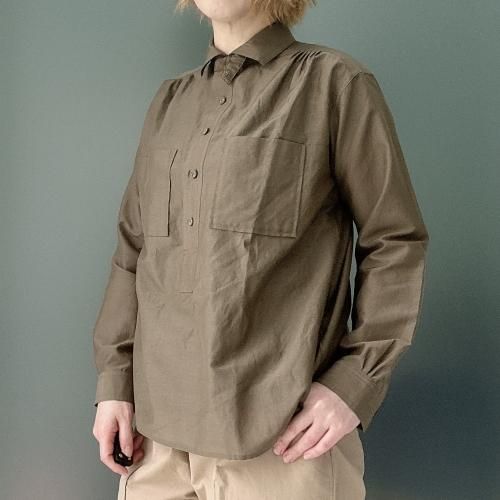 自然な光沢感としなやかさが特徴のコットンシルクを使用したプルオーバーシャツ。