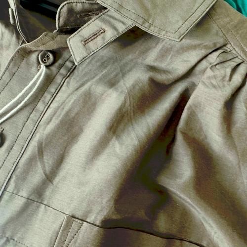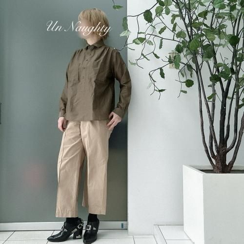 ドレープ性のあるマテリアルをあえてワークディテールで仕上げることでデイリーな着こなしも可能。