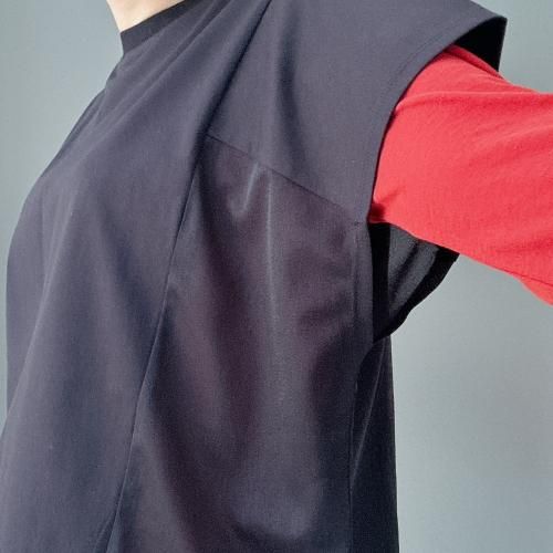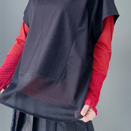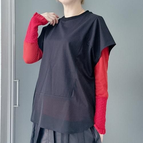 ◆キレイ目なシルケットジャージと透け感のあるジャージ素材をドッキングしたデザイントップス◆