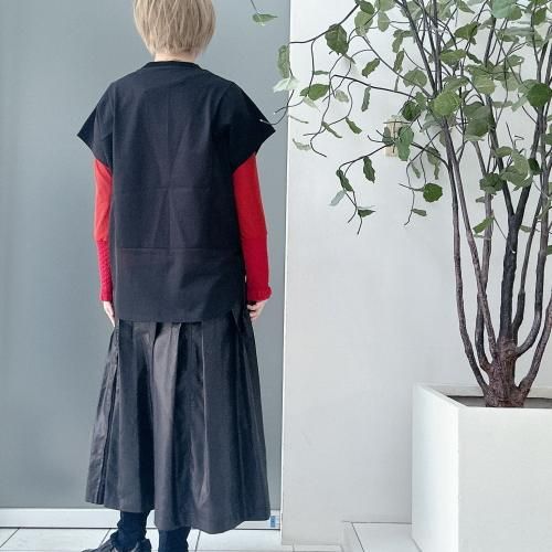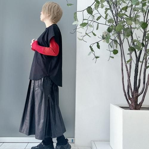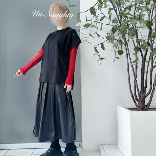 裾とサイドが透けるようにくりぬいたデザインで、目を引くワンポイントをつけつつも身頃の中心や肩部分は透けないので、インナーの合わせ方を気にせず着られます。