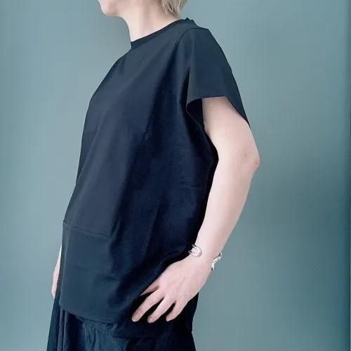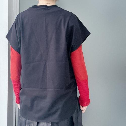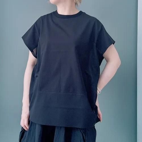 天竺素材と透け感のあるカットソーを組み合わせたTシャツです。