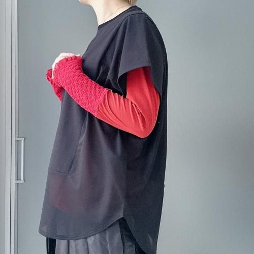 別布:糸や組織で独特なシボ感が表現され、透け感のある布帛のオーガンジー素材を思わせるようなカットソー素材。
