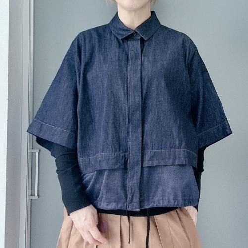 ブラウジングできる裾身頃のみふくらみとシアー感が生きるシアーデニムを使用しています。