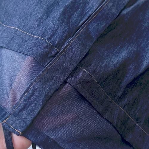 別布:ウーリー分繊糸を使用した梨地のようなザラっとした表面感が特徴のトリコット素材にデニムの表情を模した昇華転写プリントに加えた軽量で快適な素材です。