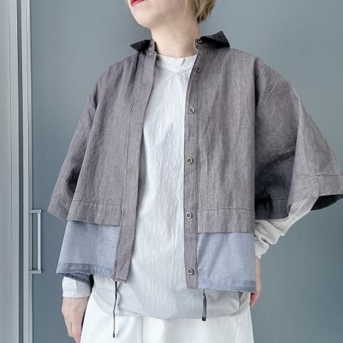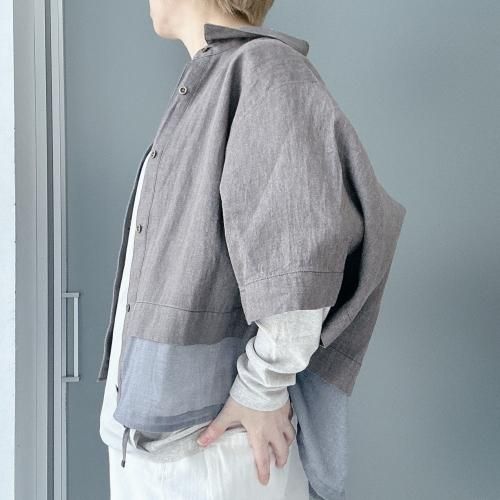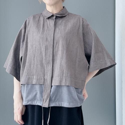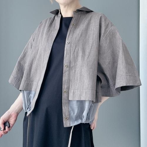 裾のブラウジング具合によっては結構ショート丈になり、羽織でもアレンジが効いたスタイリングになるアイテムです。