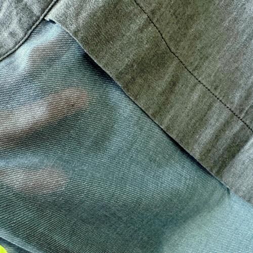 別布:ウーリー分繊糸を使用した梨地のようなザラっとした表面感が特徴のトリコット素材にデニムの表情を模した昇華転写プリントに加えた軽量で快適な素材です。