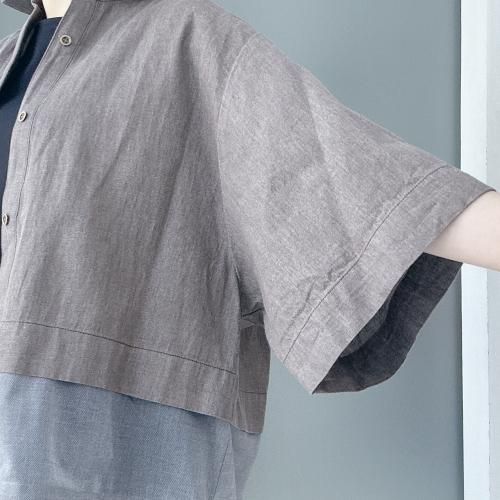 ◆6ozデニム×デニムプリント生地の裾を絞ったり羽織ったりと着こなしのアレンジが楽しめる使い勝手の良いデザインシャツ◆