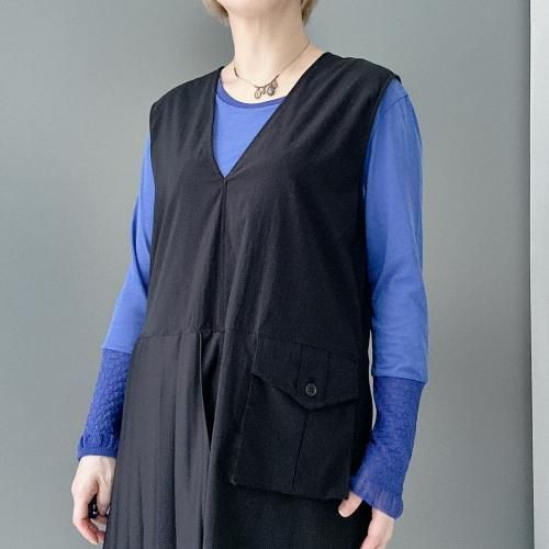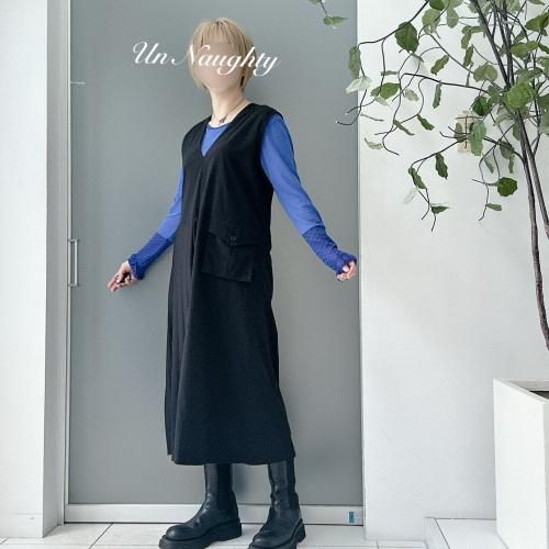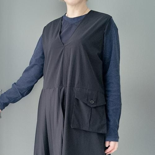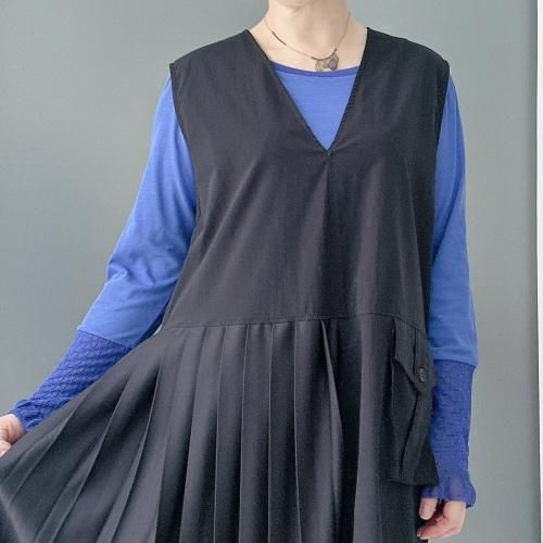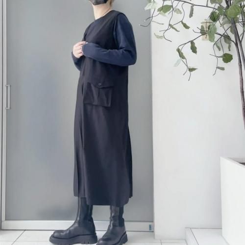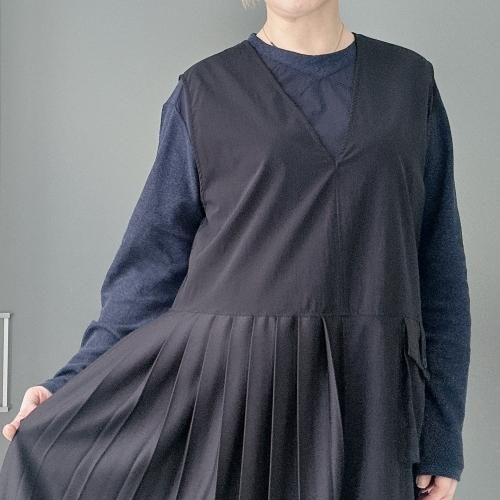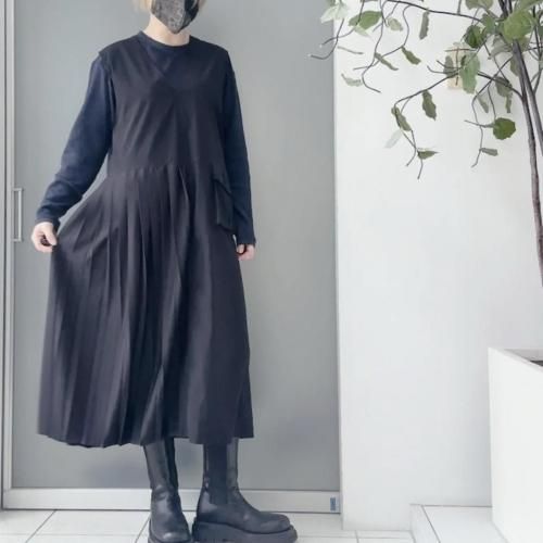 -プリーツとワーク感のあるポケットが特徴的なワンピース。