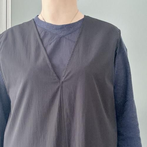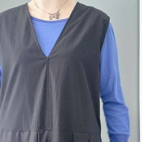 -肩先が隠れるノースリーブで、Iラインシルエットを強調。