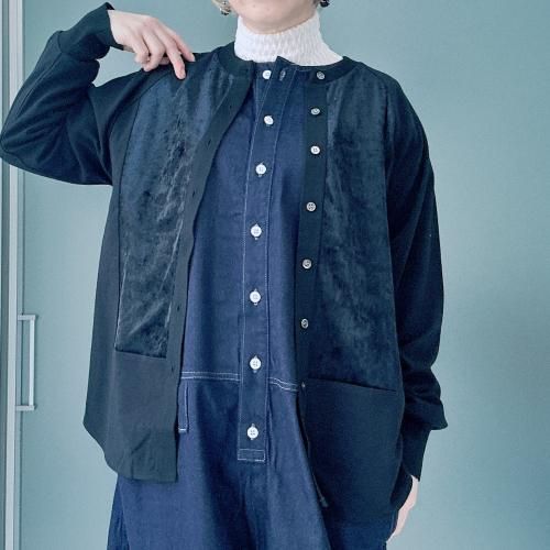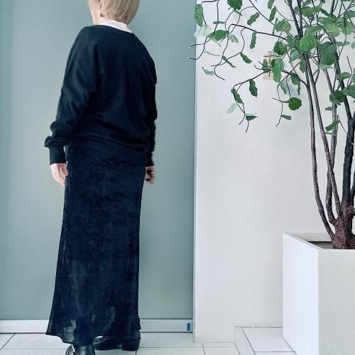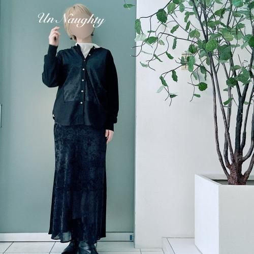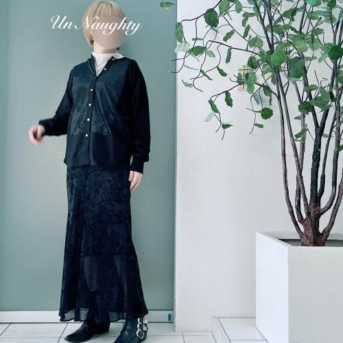 ブラックのみベロア素材が共通なスカートMN252S48、パンツMN252P49と合わせてセットアップ風に着るのも素敵です。