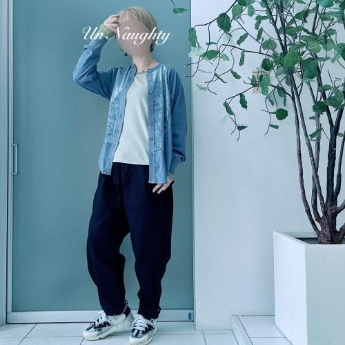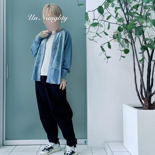 ブラックのみベロア素材が共通なスカートMN252S48、パンツMN252P49と合わせてセットアップ風に着るのも素敵です。