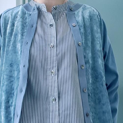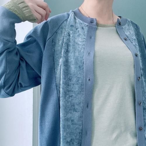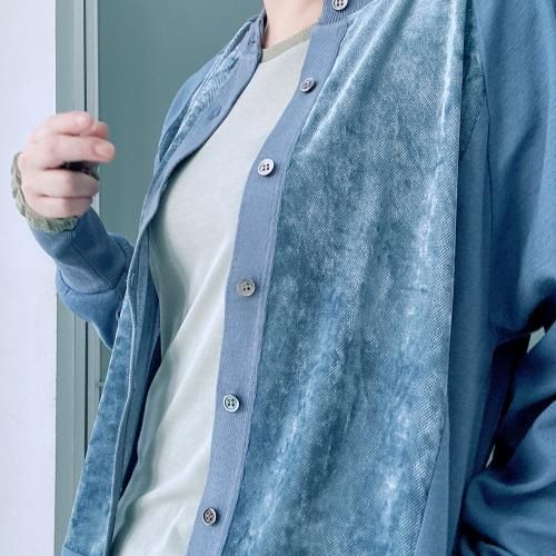 衿・袖口はリブ、前立ては総針の編地を施し、ニット見えする様に仕立てたこだわりのデザイン。
