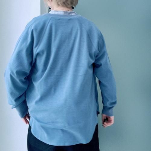 カットソー素材:コットンをベースにレーヨンの柔らかさとウールの膨らみを加えたオリジナルブレンドの糸を使用した片袋編みの素材。