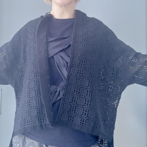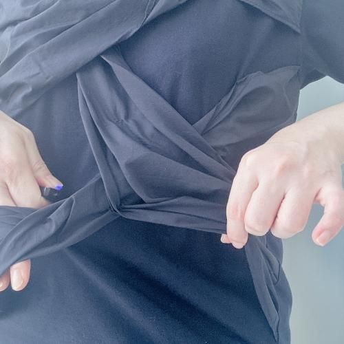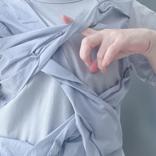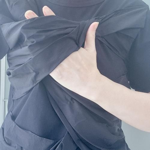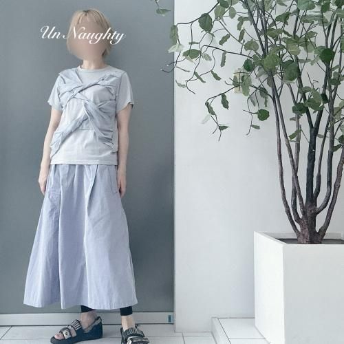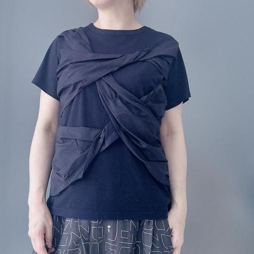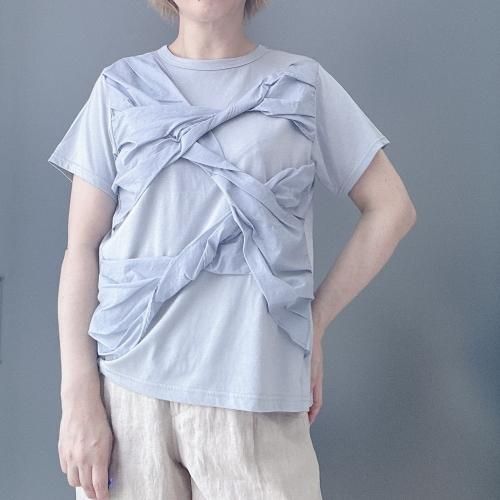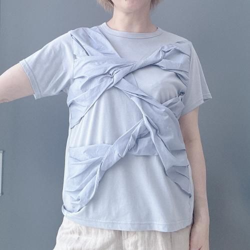 ペーパー感覚のエアリーな綿ナイロンをクロスさせながらハンドクラフトでアレンジしたラグジュアリーTEE。