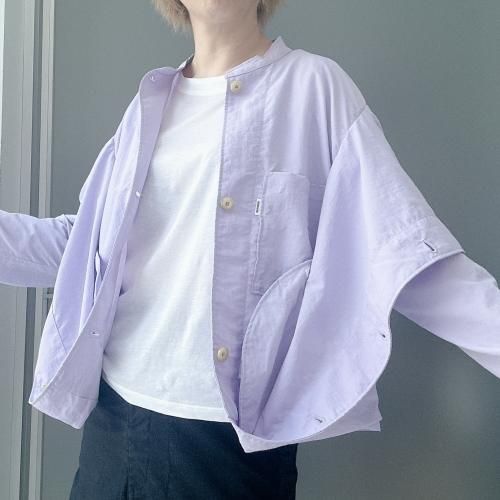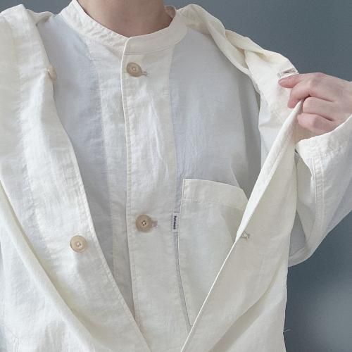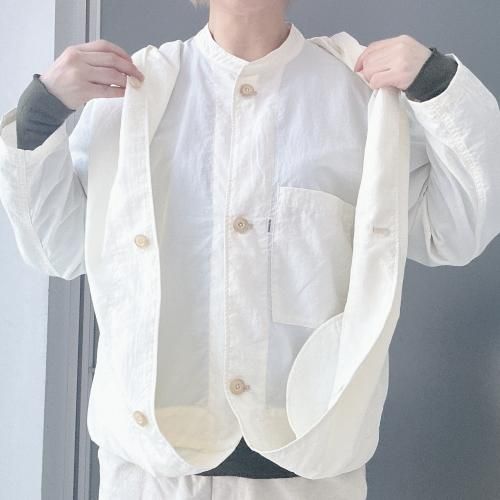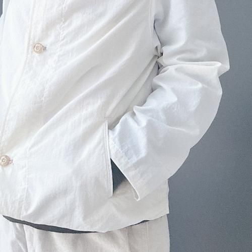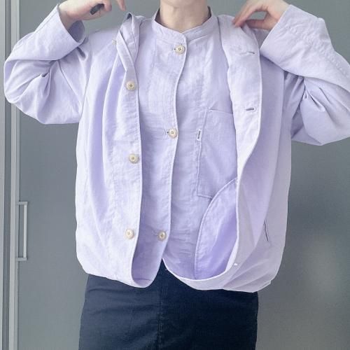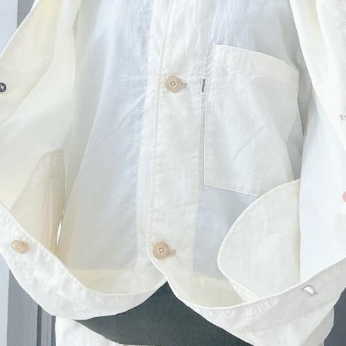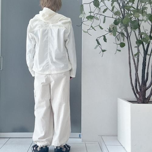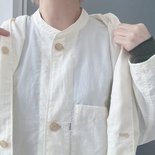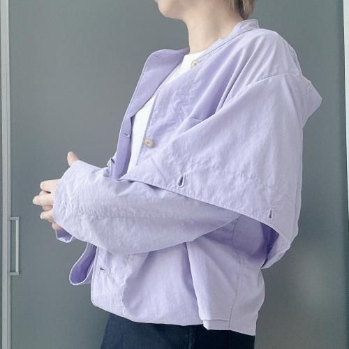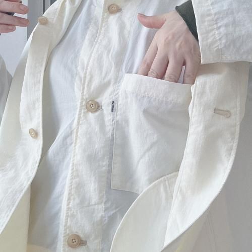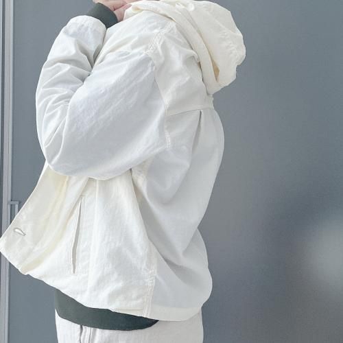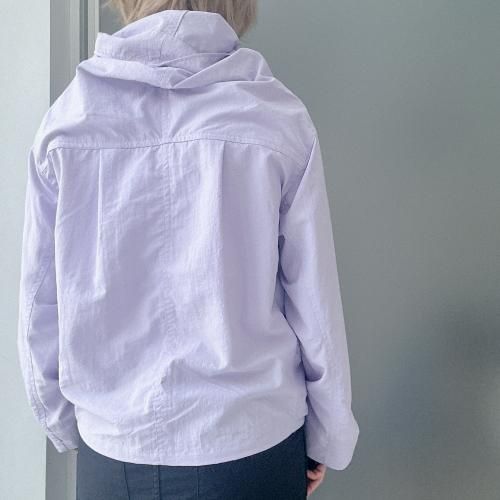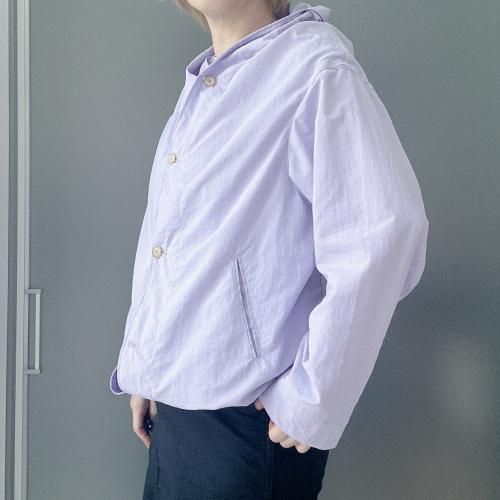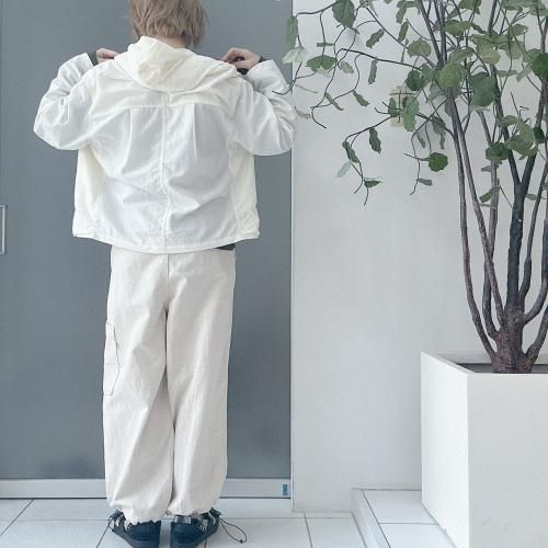 裾で繋げた前身のパーツがそのままフードまで繋がったレイヤードディテールがおもしろい春のアウター。