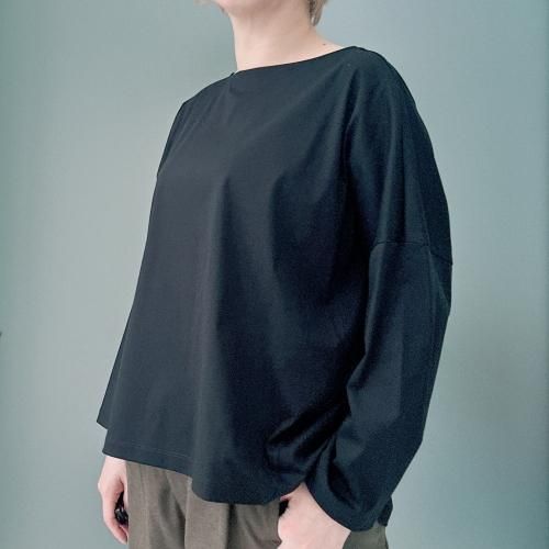 -トリコット編みで織物のようなハリ感を持たせたニット素材。