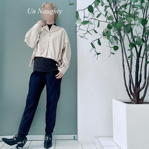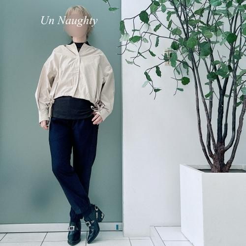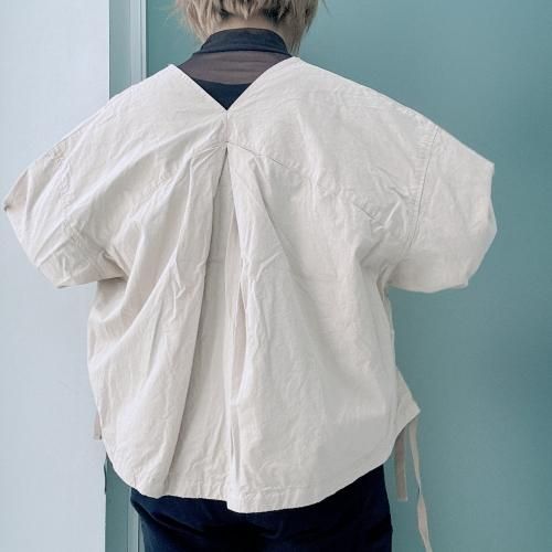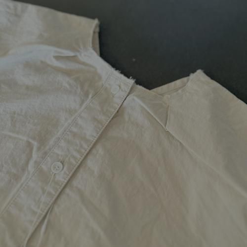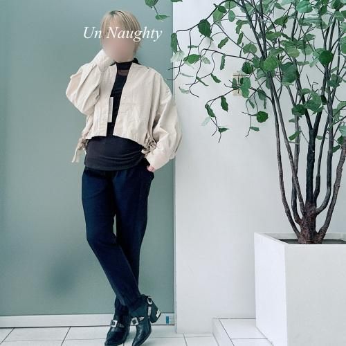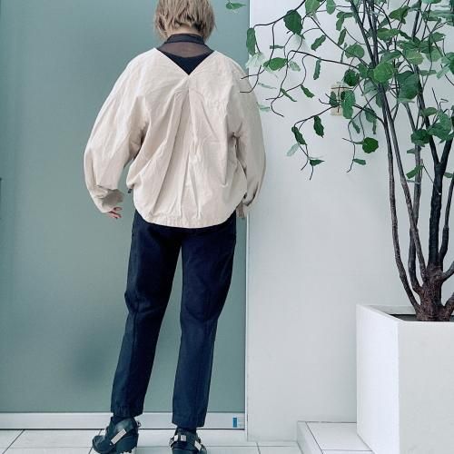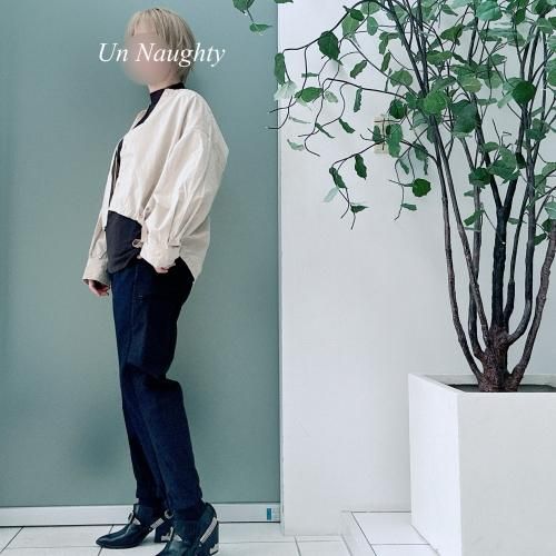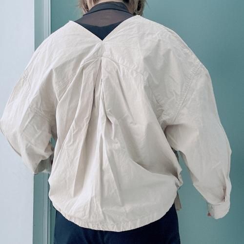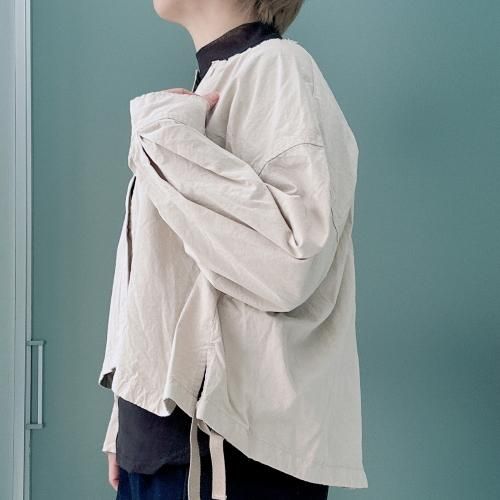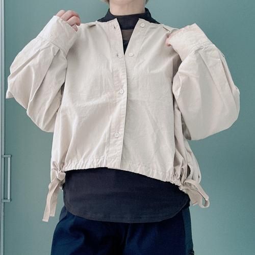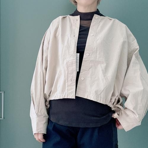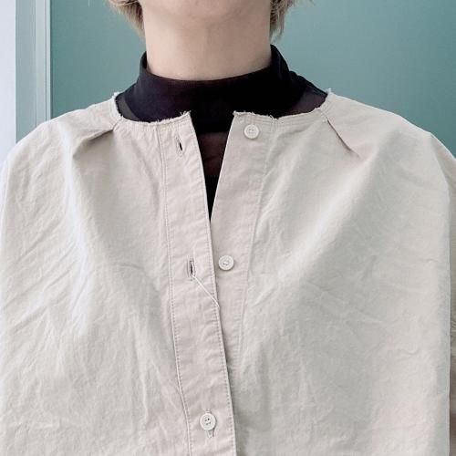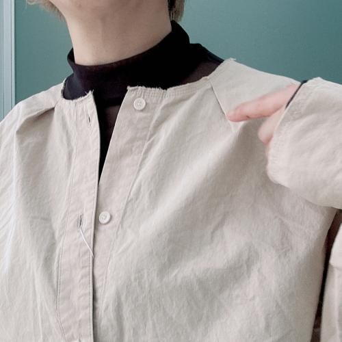 軽く抜け感のあるノーカラーのデザインシャツブルゾン