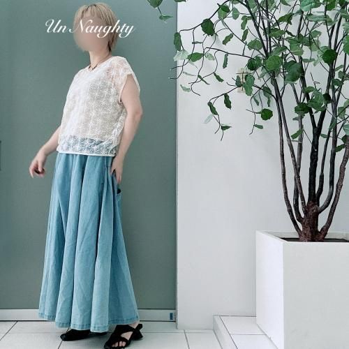<予約>tsukinowaブリーチデニムのサーキュラースカート(3月入荷予定)