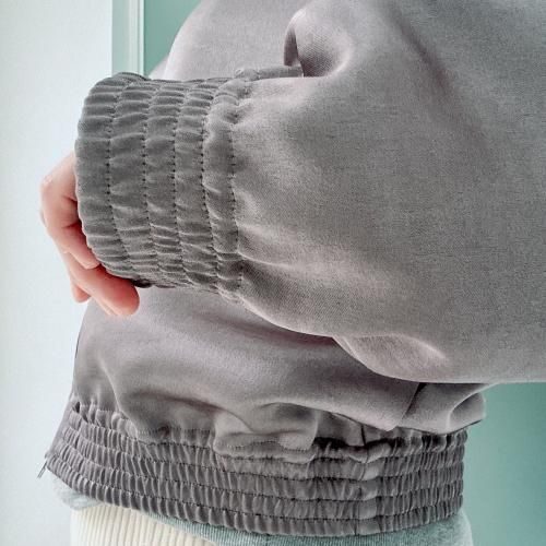 袖口と裾は細かいステッチを入れゴムギャザーにすることでよりエレガントな印象を演出したブルゾンです。