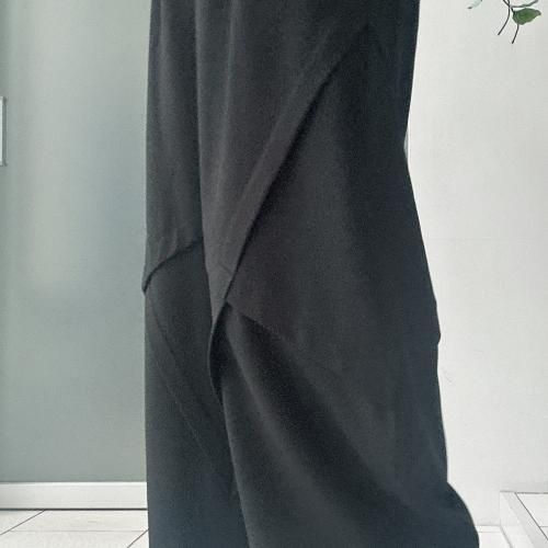 -立体的な切り替えラインが特徴のワイドパンツ。