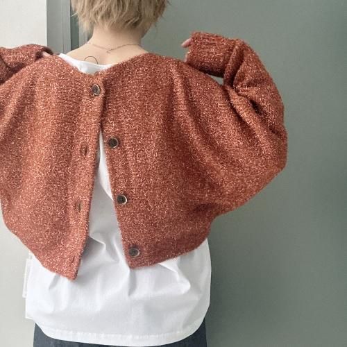 前後着用が可能で、プルオーバーとしてはもちろん、後ろ前にしてカーディガンとしても着られる便利なアイテムです。