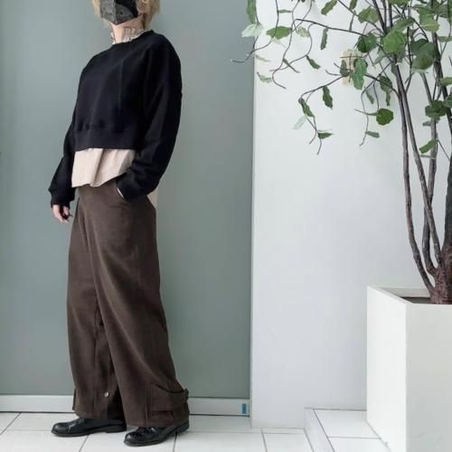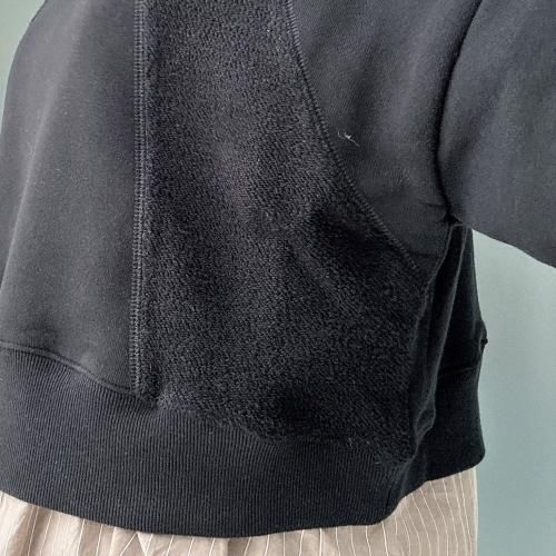 ラフに着られるコットン裏毛を使用し、ゆるっとした長めの袖にクロップド丈のバランスが新鮮なショートスウェットトップス。