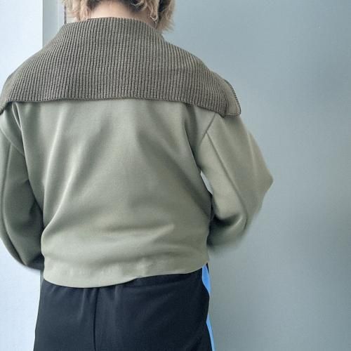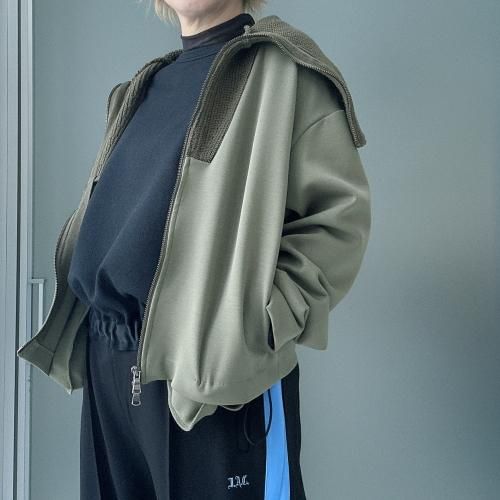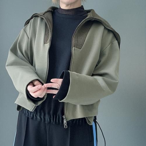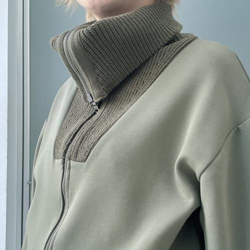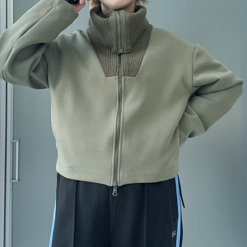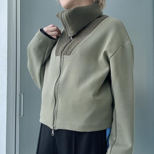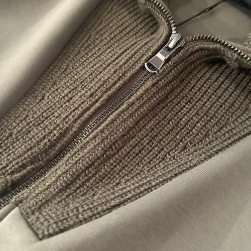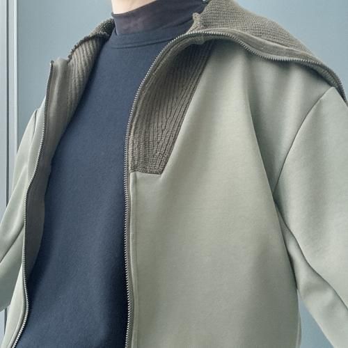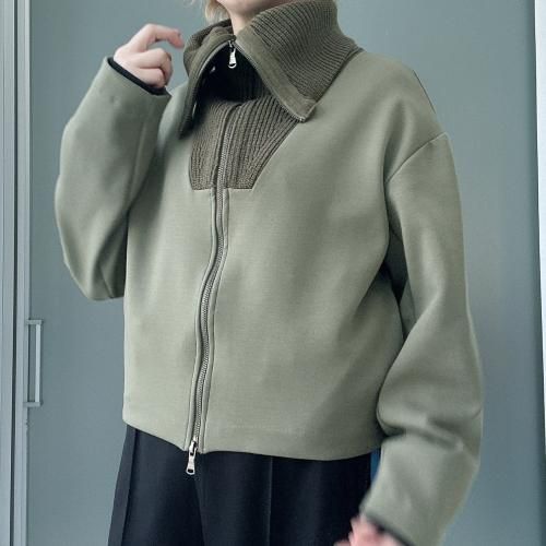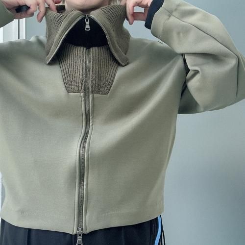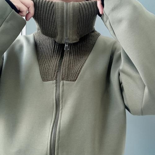 コットンダンボールニット×ニット ドッキングジップアウター