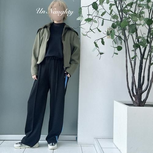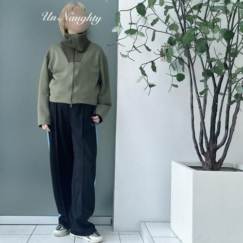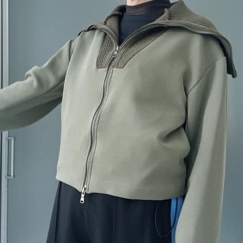 ◆ニットで編み立てたセーラーカラー風の衿が特徴のデザインジップアウター◆
